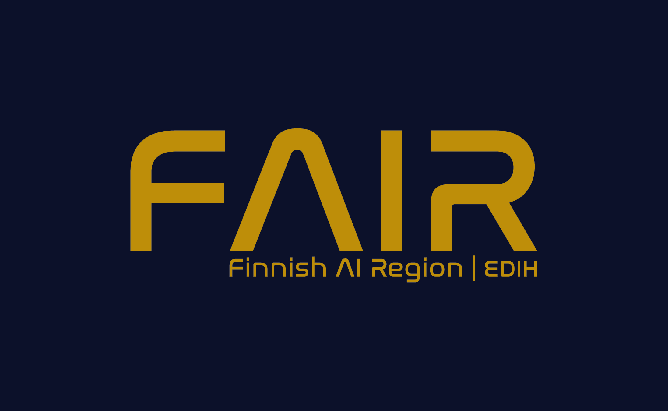 White logo of Finnish AI Region (FAIR EDIH). In is written FAIR - FINNISH AI REGION, EDIH